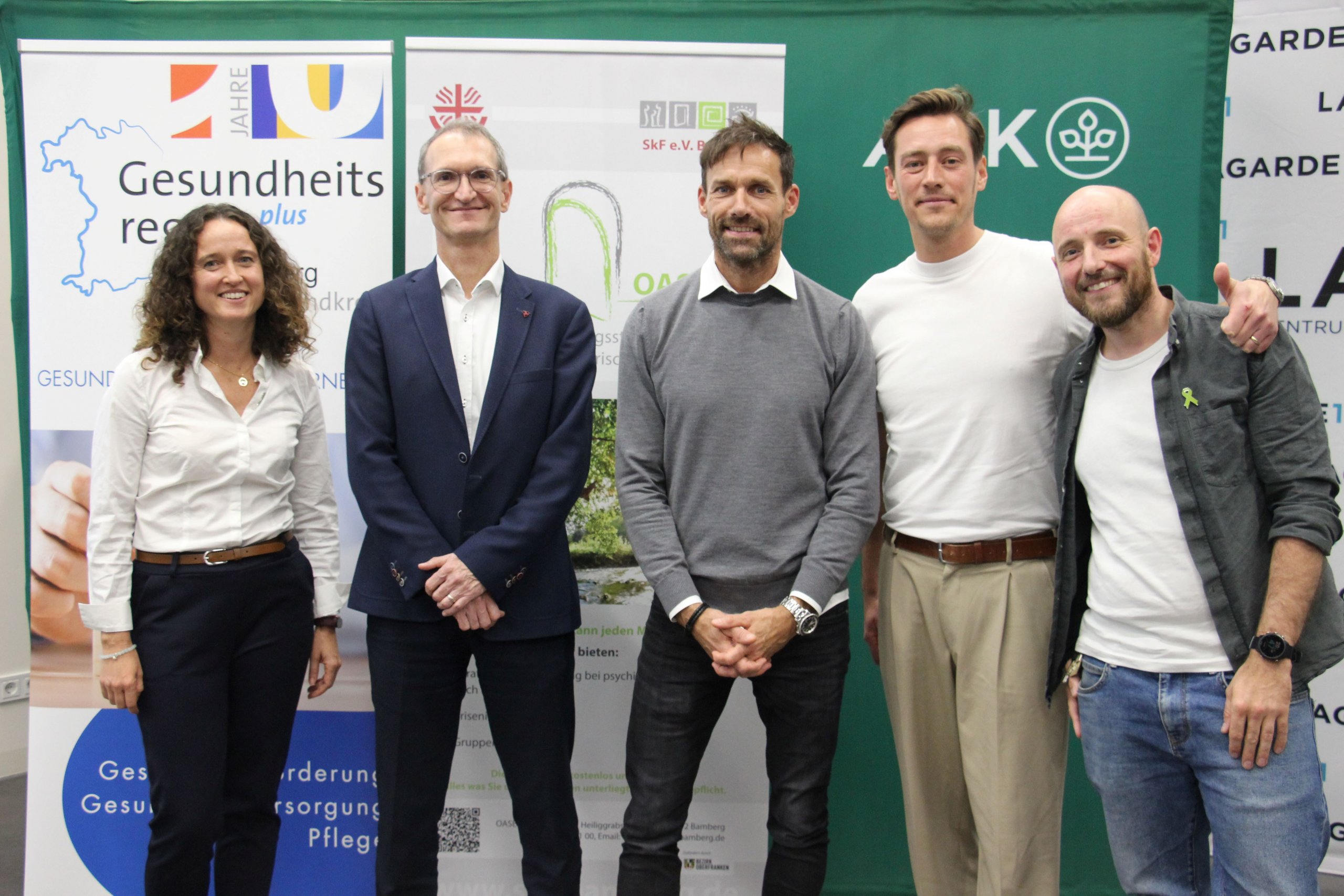 Zuversicht entwickeln, psychisch stabil bleiben und mit einem positiven Blick in die Zukunft schauen – das fällt vielen Menschen schwer. Wie kann man mental fit in die Zukunft gehen? Dieser Frage ging eine Veranstaltung zum „Tag der seelischen Gesundheit“ auf den Grund, zu der die GesundheitsregionPLUS Bamberg gemeinsam mit dem Sozialpsychiatrischen Dienst, der AOK Bamberg, der Sozialstiftung und der Volkshochschule Bamberg-Land eingeladen hatte. Ein Vortrag und ein Gespräch mit dem Chefarzt der Bamberger Klinik am Michelsberg, Prof. Dr. Stefan Unterecker, und dem Spitzensportler Sven Hannawald warfen einen Blick auf das Thema psychische Gesundheit. Der ehemalige Skispringer hatte sein Burnout und den anschließenden Kampf zurück ins Leben öffentlich gemacht. Heute ist er das Gesicht der AOK-Kampagne „Seelenstark“.
