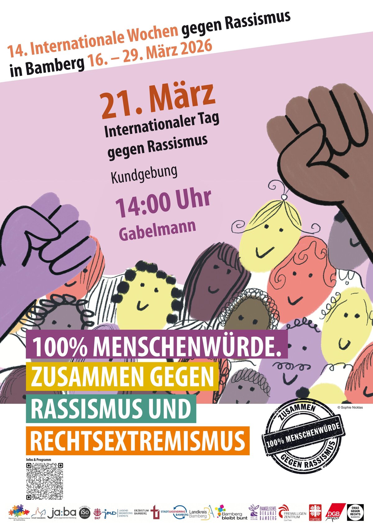 Mit vielfältigen Veranstaltungen und Aktionen setzen die beteiligten Organisationen ein Zeichen gegen Rassismus und für Vielfalt, Respekt und gesellschaftlichen Zusammenhalt: : https://bildungsregion-bamberg.de/angebote/internationale-wochen-gegen-rassismus/